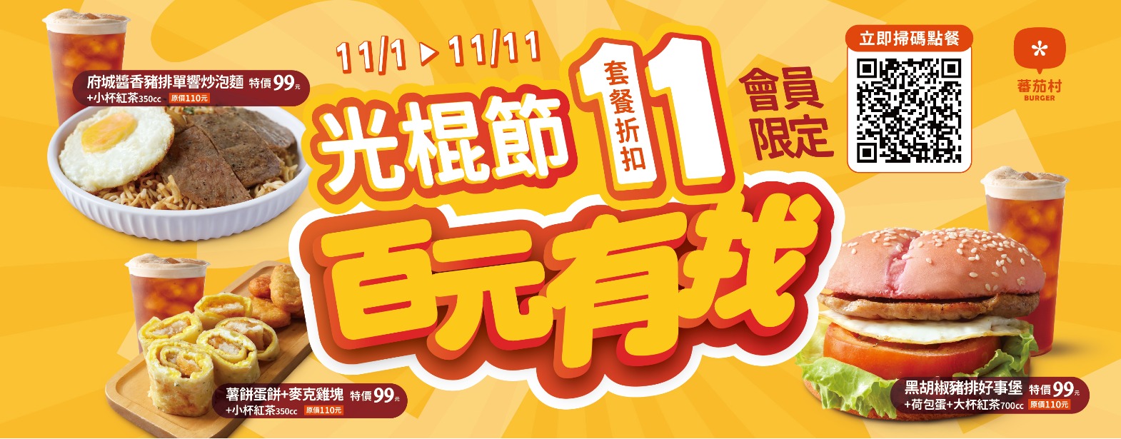 【光棍不孤單 ‧ 放價不放閃😎】11/1–11/11雙十一限定🔥百元有找!
