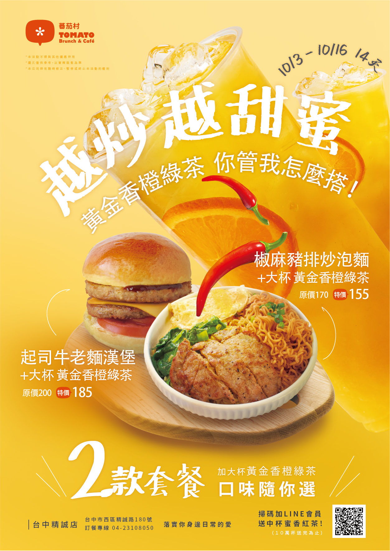 🛒椒麻豬排炒泡麵+大杯黃金香橙綠茶=原價170/特價155元
